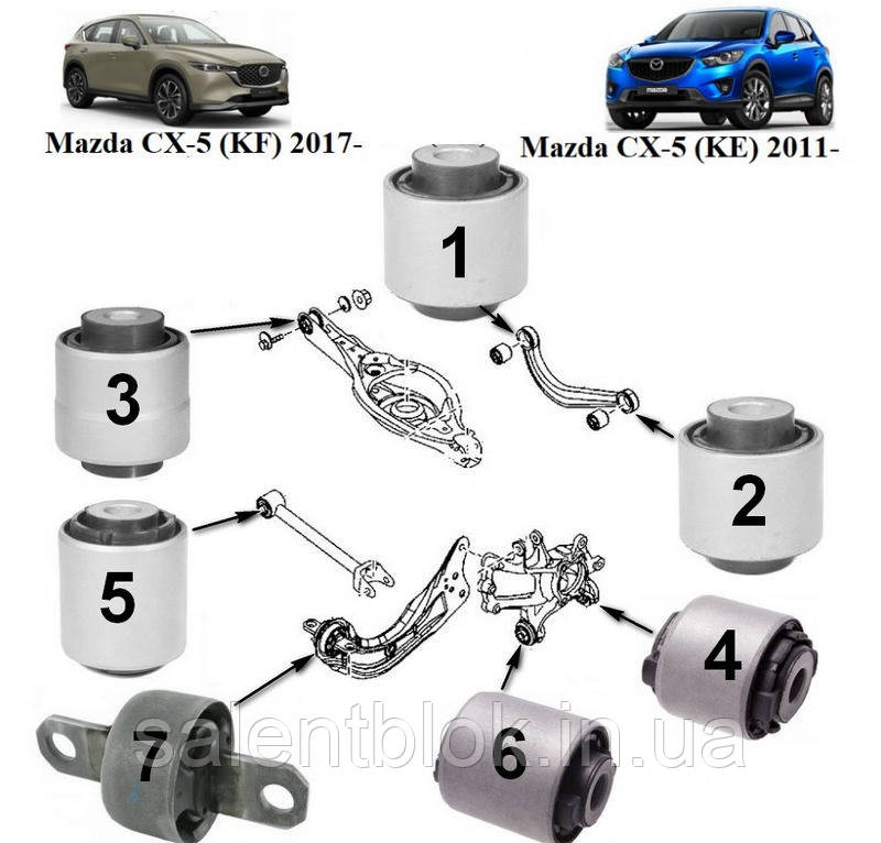 Сайлентблоки Mazda 3 (BM) 2013-, Mazda 3 (BN) 2016-, Mazda 6 (GJ) 2012-, Mazda 6 (GL) 2016-, Mazda CX-5 (KE) 2011-, Mazda CX-5 (KF) 2017-